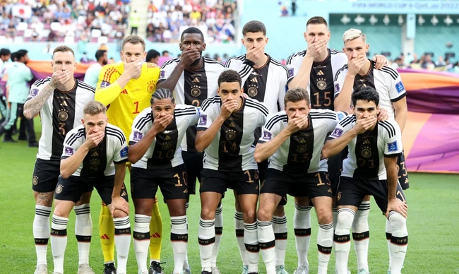 Cum nu au fost lăsați de FIFA să recurgă la acest gest, jucătorii Germaniei s-au pozat cu mâinile la gură la fotografia oficială, înainte de partida cu Japonia, arătând că nu sunt lasați să vorbească.