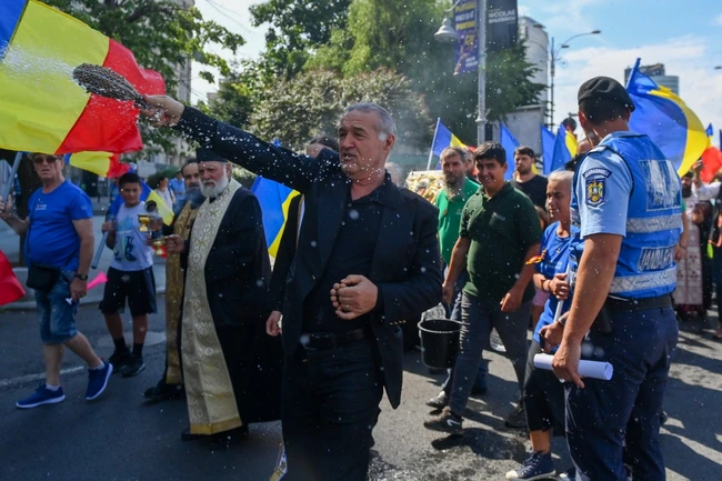 Gigi Becali a stropit cu aghiasmă pe Calea Victoriei, la o zi după marşul Bucharest Pride