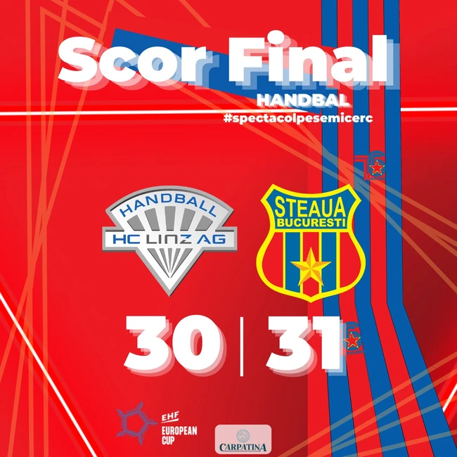 0CSA Steaua Bucureşti calificată în optimile de finală ale competiţiei masculine de handbal EHF European Cup, după ce a câștigat meciul cu echipa austriacă HC Linz AG la scorul de 31-30 (17-12), în deplasare, în manşa secundă din turul al treilea, scrie Agerpres.