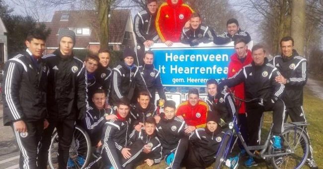 Naţionala Under 17 se află de pe 9 martie în Olanda şi mâine va ajunge în Anglia, pentru a se acomoda condiţiilor de acolo. Jucătorii au mers ieri pe biciclete la stadionul lui Heerenven, unde au descoperit că Rodion Cămătaru rămâne o legendă vie a acestui club, având o zonă dedicată numai lui în muzeul clubului.