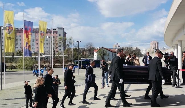 Sicriul cu trupul neînsuflețit al fostului selecționer a fost depus miercuri la Arena Națională, unde suporterii au putut să îi aducă un ultim omagiu.