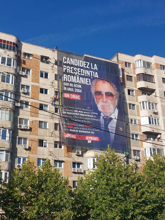 „Ion Țiriac candidează la alegerile prezidențiale și vrea să le demonstreze românilor de pretutindeni că merită votul lor... în anul 2064! Până atunci, e în campanie electorală și a început în forță! Împreună cu noi, Fundația Metropolis și inițiativa Spitale Publice din Bani Privați, Ion Țiriac sprijină construirea CELUI MAI MARE spital de psihiatrie pediatrică din România”, au explicat cei de la Fundația Metropolis.