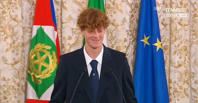Jucătorul, campion atât la Australian Open, cât și cu Italia în Cupa Davis, a apucat să spună doar două cuvinte în fața președintelui țării, apoi a izbucnit în râs. „Domnule președinte…”, a spus Jannick Sinner, care și-a întrerupt discursul din cauză că nu și-a mai putut reține râsul. Colegii lui Jannik au început și ei să se amuze în sală, în timp de Sergio Mattarella a zâmbit înțelegător.
