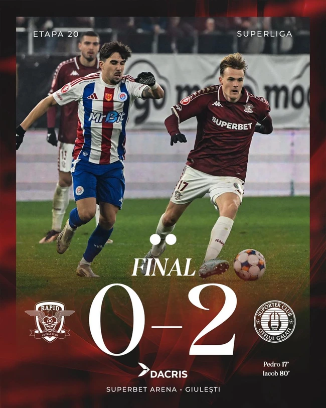 După remiza Botoșaniului, Rapid avea șansa de a se distanța în fruntea clasamentului, în ultimul meci pe teren propriu din acest an. Însă vișiniii au dat cu piciorul acestei oportunități, evoluând lamentabil contra unei formații excelent organizate. Oţelul s-a impus meritat, prin golurile marcate de Pedro Nuno (17), cu o execuție frumoasă din careu, după o minge întoarsă de Denis Bodrun, şi de Paul Iacob (80), fost jucător la Rapid, din lovitură liberă de la circa 25 de metri la care portarul Aioani a fost total aerian.