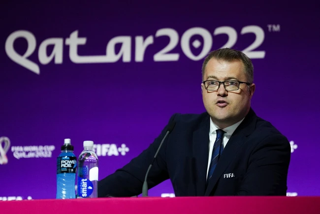 La finalul unei lungi conferinţe de presă a preşedintelui FIFA, Gianni Infantino, Bryan Swanson a luat cuvântul pentru a-l apăra pe preşedintele forului mondial, victima "criticilor" venite în principal din partea comunităţii LGBTQ+.