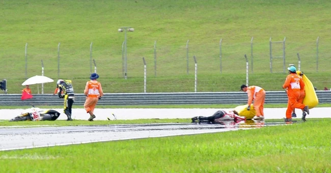 Italianul Marco Simoncelli (Honda), care a căzut, duminică, în turul doi al Marelui Premiu al Malaysiei la MotoGP şi a rămas la pământ, fără cască, a încetat din viaţă la spital, unde fusese transportat cu elicopterul. După ce a pierdut controlul motocicletei, care a derapat în partea interioară a curbei, Simoncelli a fost lovit de compatriotul său Valentino Rossi (Ducati) şi de americanul Colin Edwards (Yamaha), acesta din urmă alegându-se cu un umăr dislocat.