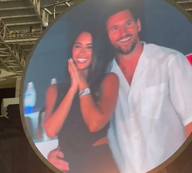 Argentinianul, împreună cu soția sa, au fost filmați cu faimosul Kiss Cam, fiind aclamați de fani și încurajați să se sărute în fața camerelor de filmat.