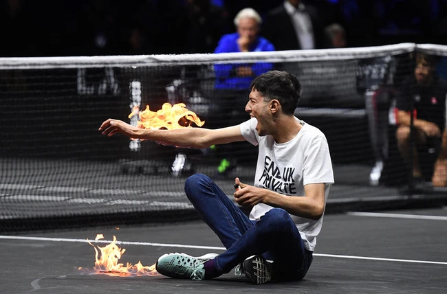Moment șocant la Laver Cup: și-a dat foc pe teren pentru a protesta față de schimbările climatice