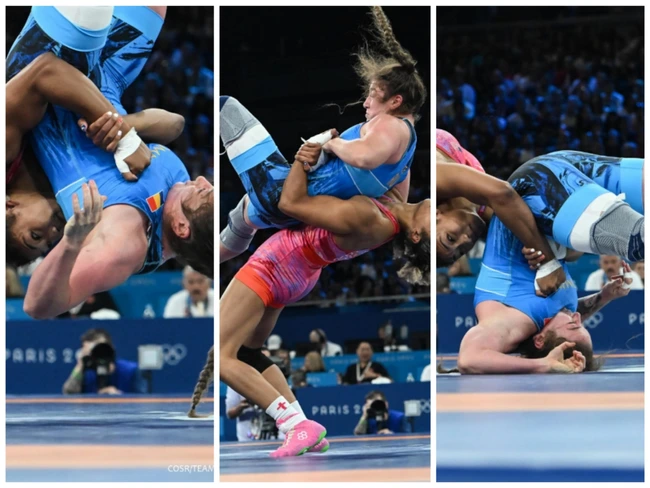 0Momentul în care luptătoarea Cătălina Axente a fost doborâtă de adversara sa, sportiva americană Kennedy Alexis Blades, sâmbătă, în optimile de finală ale categoriei 76 kg, a fost surprins în imagini. Axente a părăsit competiția pe targă. Medicul a dezvăluit care este starea sa.