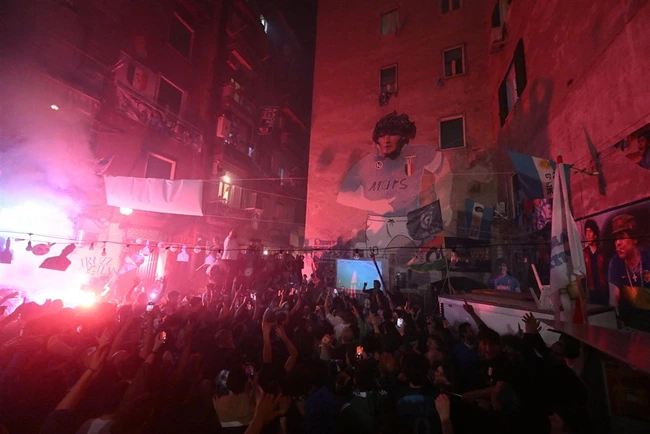 Sărbătoarea a început în rândul fanilor napoletani care au pus capăt unei secete de peste 33 de ani în campionatul intern. Ultima oară când Napoli cucerea titlul se întâmpla în 1990, cu Diego Maradona în echipă. Regretatul fotbalist este serbat și astăzi la Napoli.