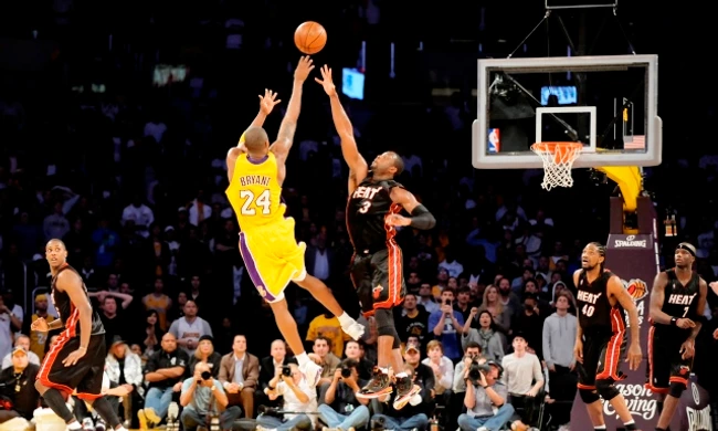 Cu Dwyane Wade apărându-se agresiv, Kobe a lansat o aruncare, puţin peste mâna întinsă în săritură de Wade, care a atins mai întâi panoul şi apoi a intrat în coş.