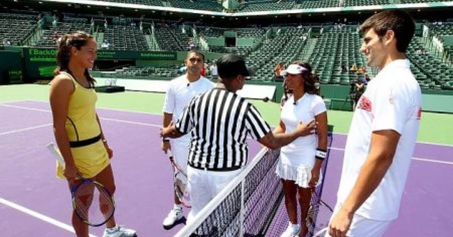 Pentru a sublinia că tenisul este un sport care poate fi practicat de oricine şi în care distracţia trebuie să fie în prim plan, la Miami s-a organizat un meci inedit de dublu mix, intitulat, sugestiv, „Glam. Set. Match". De o parte a fileului s-au aflat frumoasa Ana Ivanovic şi cântăreţul Jay Sean, iar de cealaltă Novak Djokovic şi fosta componentă a Spice Girls, Mel B. A rezultat un meci incredibil de amuzant, în care toată lumea s-a simţit bine. Iar rezultatul... chiar nu contează.