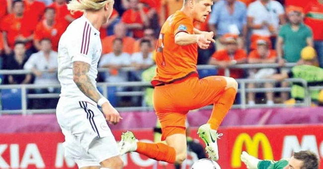 Selecţionerul batavilor, Bert Van Marwijk, a mizat obsesiv pe sistemul cu un singur atacant central, ca să facă loc în echipă pentru două extreme rapide, ignorând că are în lot doi „killeri" de careu cu care nu se poate lăuda nicio altă echipă de la Euro, golgheterii din Anglia şi Germania, Van Persie şi Huntelaar. Cu Danemarca, titular a fost primul, dar căpitanul lui Arsenal a ratat din toate poziţiile.