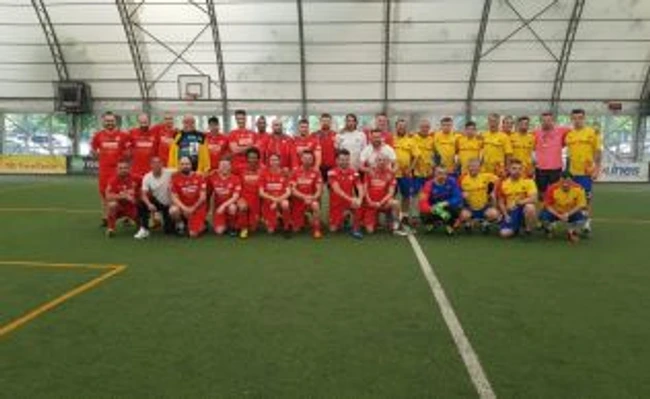 Partidă demonstrativă de fotbal între artişti şi jurnalişti, la Turneul Interparlamentar de la Mogoşoaia
