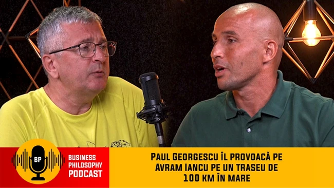 Invitat la podcastul Business Philosophy, realizat de jurnalistul Romeo Chiriac, Paul Georgescu l-a provocat pe înotătorul de anduranță, Avram Iancu, la o cursă nebună! De precizat că și Avram Iancu a fost implicat, în ultima perioadă, în niște evenimente remarcabile. De pildă, a înotat timp de 48 de zile, parcurgând cursa de la Rin, de 1.032 de kilometri fără costum de neopren.