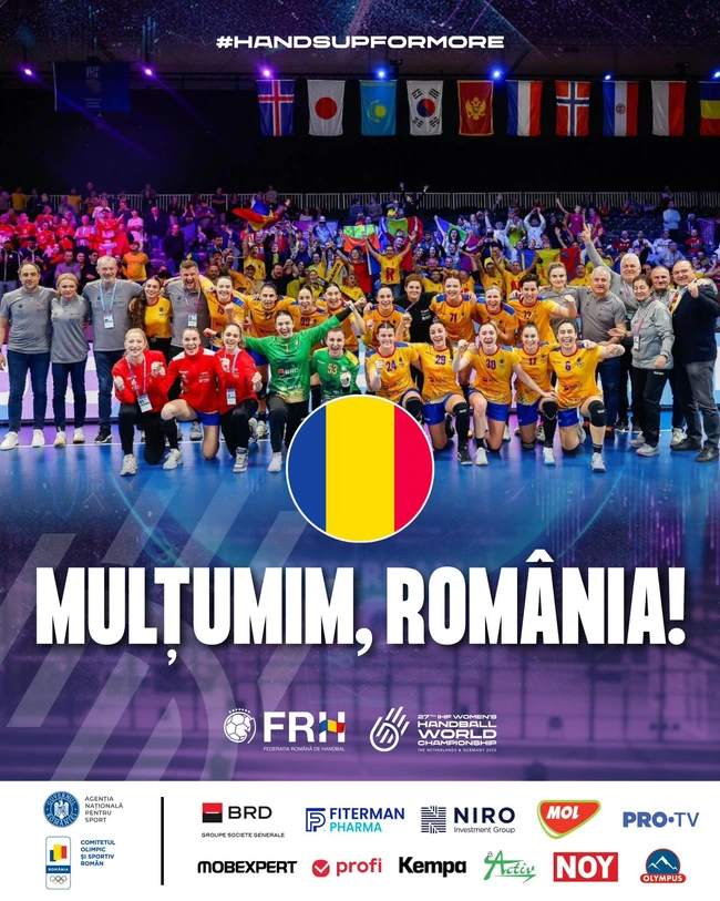 0Naționala României s-a clasat pe locul 9 la Campionatul Mondial de handbal feminin din Olanda şi Germania, după ce a învins Elveția cu scorul de 36-24 (18-9), duminică seara, la Rotterdam, în ultimul său meci din Grupa principală 1.