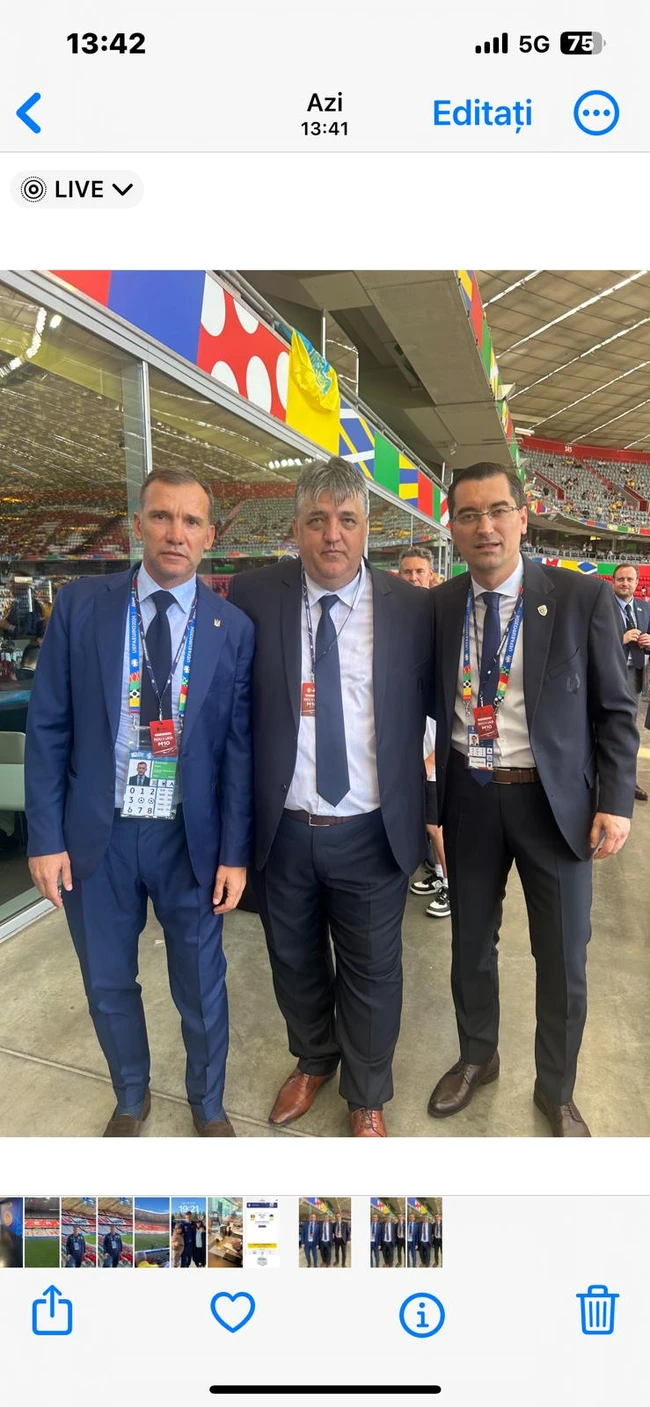 UPDATE 15.23 - Răzvan Burleanu a făcut o poză de amintire, înaintea partidei, alături de legendarul Shevchenko, fost mare atacant ucrainean, dar și cu Mihai Dăscălescu, fost vârf la echipe precum Rapid și Astra Giurgiu.