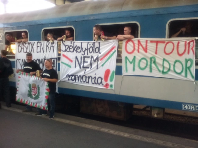 Vineri după-masă, cu o zi înaintea meciului de mare risc, susţinătorii naţionalei Ungariei aflaţi în Gara Nyugati din Budapesta fluturau cu mândrie steagurile, afişele şi pancartele cu injurii la adresa românilor şi cu mesaje de revendicare a Ardealului şi a Ţinutului Secuiesc.