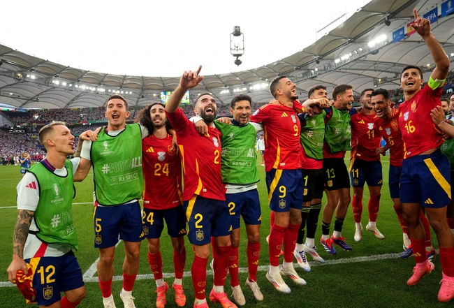 Spania s-a calificat în semifinalele Euro 2024 după ce a trecut de țara gazdă, Germania, scor 2-1 după 120 de minute de joc. Golul decisiv a fost marcat de Mikel Merino târziu, în minutul 119. Franța a trecut în sferturi de Portugalia, după executarea loviturilor de departajare, după 0-0 în timpul regulamentar. Olanda este singura dintre cele patru semifinaliste care a obținut calificarea după 90 de minute. A fost condusă cu 1-0 de Turcia, dar a revenit și s-a impus cu 2-1.