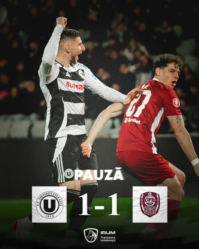 0Universitatea Cluj a câștigat derby-ul Ardealului, 2-1 cu CFR Cluj, luni seară, în ultimul meci din prima etapă a play-off-ului în Superliga de fotbal.