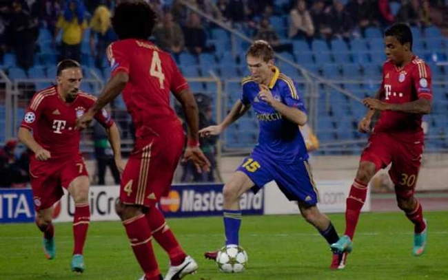 Pentru BATE Borisov, Alexandru Pavlov ('23), Vitali Rodionov ('78) şi Renan Bressan ('95) au defilat în faţa porţii lui Bayern, în timp ce golul de onoare al germanilor a fost reuşit de Franck Ribery ('91) în prelungirile meciului.