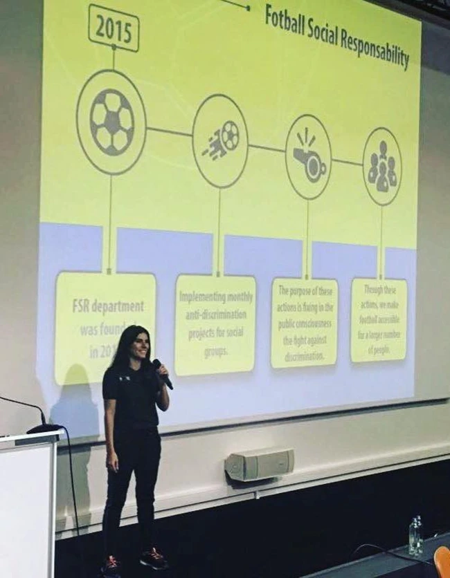 În cadrul workshop-ului, Diana Pirciu, manager responsabilitate socială, şi Ciprian Paraschiv, manager dezvoltare fotbalistică, au prezentat planul Federaţiei Române de Fotbal pentru antidiscriminare şi incluziune socială. „Diversitatea este o promisiune şi o provocare din ce în ce mai mare în contextul schimbărilor demografice în Europa modernă. Prin fotbal, la nivel european, reuşim să facilităm accesul la sport persoanelor cu dizabilităţi şi să creăm o diversitate etnică fie că vorbim de jucători, arbitri, antrenori sau de alte persoane implicate în fenomen”, a spus Diana Pirciu, manager responsabilitate socială.