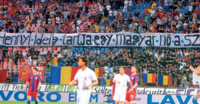 16 iulie 2009. Steaua învinge Ujpest cu 2-0, însă partida în sine trece în planul secund la apariţia spurcatului mesaj arborat de suporterii roş-albaştrii: „Cât ţine femeia maghiară rahatul în ea? Nouă luni“.