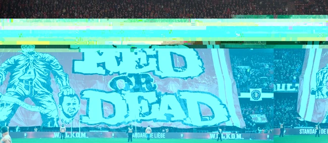 În imagine este înfăţişat Steven Defour, fotbalist care a evoluat la Standard Liege în perioada 2006-2011, iar anul trecut a decis să semneze cu rivala Anderlecht. În meciul direct al celor două echipe, suporterii i-au dedicat fotbalistului un mesaj: „Red or dead“ (n.r. roşu sau mort, roşu fiind culoarea celor de la Standard Liege).
