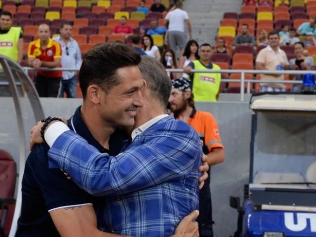 Nașul Gigi Becali și finul Mirel Rădoi au stat astăzi față în față și au bătut palma, după ce duminică seară au discutat la telefon. Tehnicianul nu a dorit să dea detalii despre întâlnire, amânând momentul pentru mâine.
