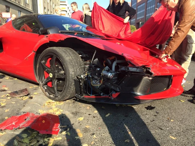Din fericire, n-a fost nimeni rănit, în afara portofelului proprietariului, care s-a bucurat doar câteva sute de metri de o cursă la bordul noului său Ferrari.