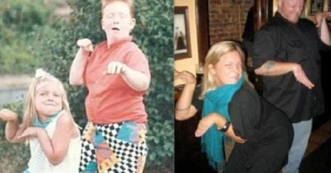 Fotografiile din copilărie refăcute cu aceiaşi protagonişti, în prezent, sunt "la modă", în ultima perioadă.