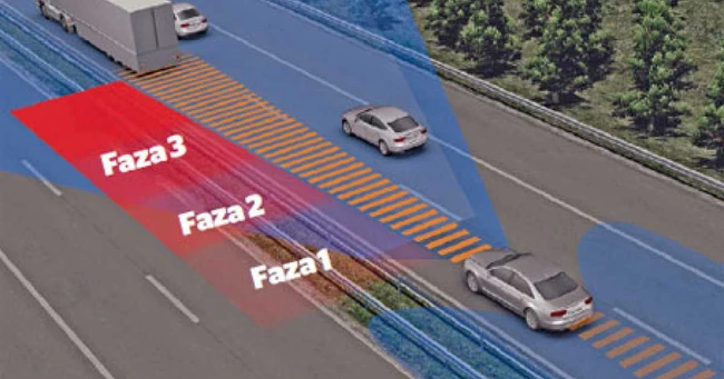 Faza 1: Semnal acustic, urmat de o uşoară frânare.
