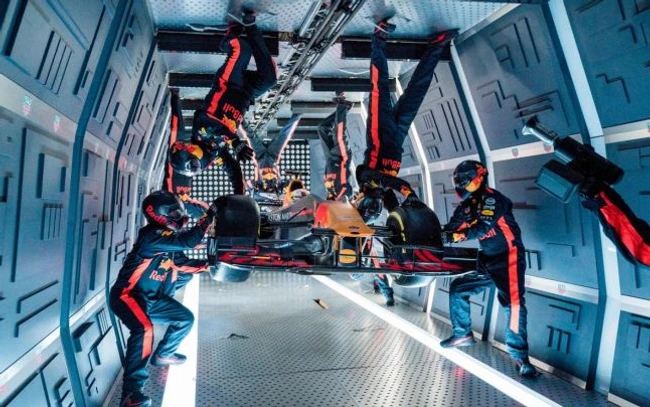 De-a lungul unei singure săptămâni, cei 16 mecanici ai echipei Aston Martin Red Bull Racing au trecut printr-un program extensiv de formare al astronauţilor, pregătindu-se pentru marea provocare a zborurilor fără gravitaţie, în încercarea de a face un pit stop complet, în interiorului fuzelajului de antrenament al astronauţilor. Nu mai puţin de 10 cameramani şi producători au urcat spre stele alături de mecanici şi de monopostul echipei Aston Martin Red Bull Racing.