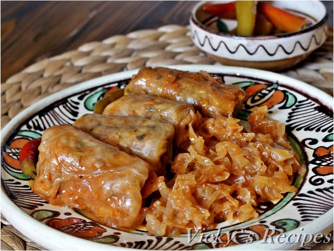 De exemplu, două din trei cepe se toacă fin, se călesc în ulei și se adaugă mai apoi orezul, apa, sare, piper și se lasă la fiert. Separat, ceapa rămasă se călește cu boia de ardei și câteva boabe de piper. Odată ce ceapa devine translucidă se adaugă sucul de roșii. În paralel, după ce s-a fiert orezul și apa a scăzut, se adaugă prunele uscate și miezul de nucă. Faceți o diferență clară între ceapa cu bulion și undeala cu orez, prune și nucă. Cea din urmă reprezintă umplutura, iar bulionul cu ceapă, zeama de fiert. Pe fundul oalei se pune varză tocată mărunt cu morcovul ras. Se adaug[ sarmalele bine formate. Deasupra se pune încă un strat de varză murată cu cimbru și morcov ras. Peste se toarnă bulionul. Se dau la cuptor pentru o oră. Nu are rost să explicăm ce gust au.