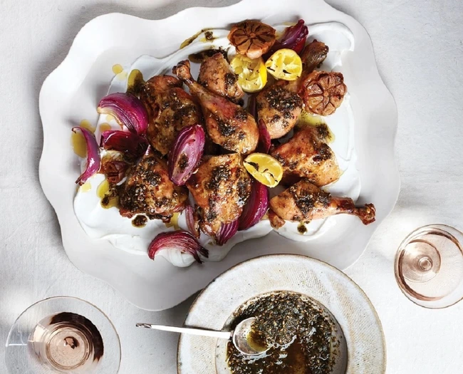 Ce mănânci după sală: Pulpe de pui la cuptor cu vinete și za'atar