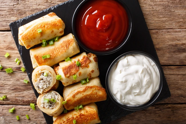 0Această variantă sărată de clătite, cu umplutură bogată și sos de smântână, este consistentă și poate înlocui cu succes un prânz sau o cină.