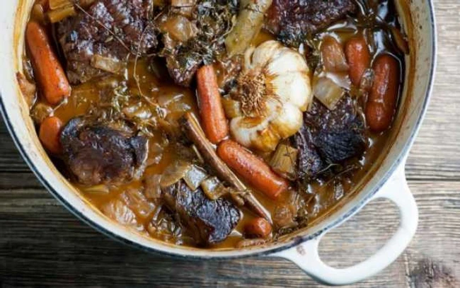 0Această reţetă de coaste de vită în vin roşu este acea mâncare potrivită pentru un weekend de toamnă în care vrei să fii leneş! Chair şi mâncarea e pentru leneşi având în vedere că cel mai mult timp stă în cuptor să se facă. Nu ai nevoie decât de carne proaspătă, un vin bun, câteva legume şi toate astea băgate la cuptor două ore şi jumătate.
