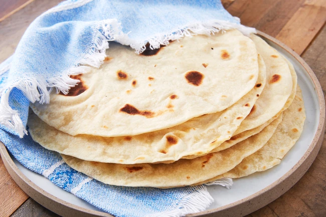 „Toate ingredientele se pun într-un bol. Frământăm până când obținem un aluat neted, nu foarte moale, care se dezlipește de pe mâini. Lăsăm aluatul acoperit să se odihnească 15-20 de minute. Apoi îl împărțim în 4 bucăți și formăm 4 lipii, cât doriți de subțiri.