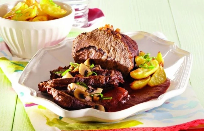 Află cum se prepară friptură de vită cu ciuperci pe clickpoftabuna.ro.
