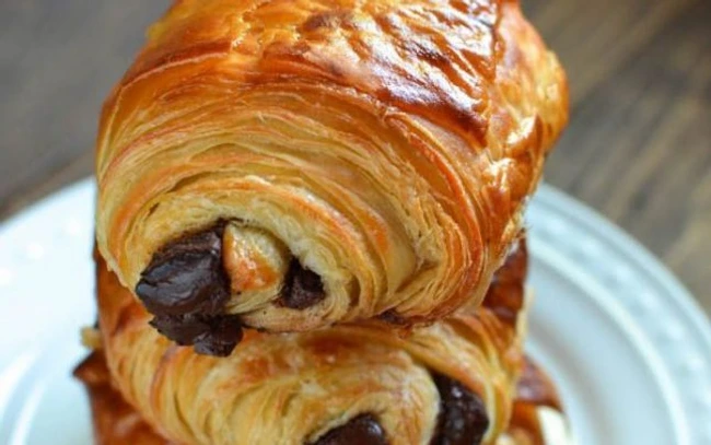 Întindeţi cate o linguriţă de ciocolata pe fiecare dreptunghi. Împăturiţi-le, ungeţi-le cu ou şi puneţi-le la copt. Atât de simplu este.
