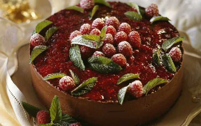 Tort de ciocolată cu zmeură şi blat de pişcoturi
