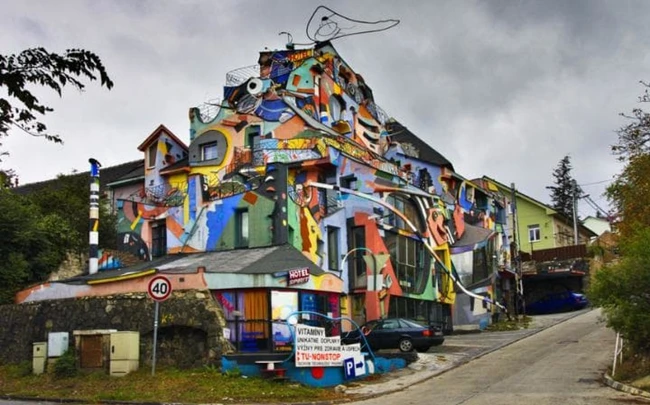 Din afară, clădirea seamănă cu un morman de gunoaie. Inclusiv camerele au exact acelaşi contrast de culori, lipsit de orice bun gust. Managerii hotelului spun că acesta este amenajat pentru persoanele care încearcă să îmbunătăţească managementul stresului, sănătatea fizică şi mentală.