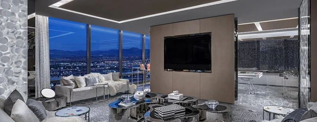 În preţ sunt incluse şi serviciile unui majordom şi a doi şoferi care vor sta la dispoziţia clienţilor pe durata cazării, o piscină cu mozaic şi motive cu fluturi din care pot admira Las Vegasul şi o sală de cinema unde musafirii pot urmări filmele preferate alături de prieteni. Cele mai extravagante obiecte din acest penthouse sunt mai multe opere de artă semnate de celebrul artist britanic Damien Hirst.