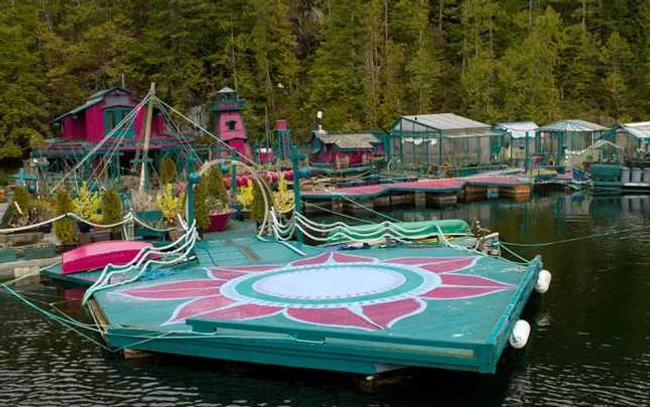 Wayne Adams şi Catherine King au construit în anul 1992 un complex plutitor format din 12 platforme, unde au tot confortul necesar unei familii. Complexul numit Freedom Cove curprinde case din lemn, sere şi spaţii de relaxare, toate unite între ele printr-o pasarelă din lemn.