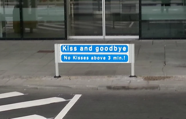 În zona intrării în aeroportul din Aalborg, tronează un semn pe care scrie clar „Kiss and goodbye („Sărută şi ia-ţi «la revedere»”), exact acolo unde cuplurile ar simţi nevoia unui ultim pupic, înainte să se despartă. Acest lucru este cu putinţă, atât timp cât nu se depăşesc cele trei minute permise de aeroport.