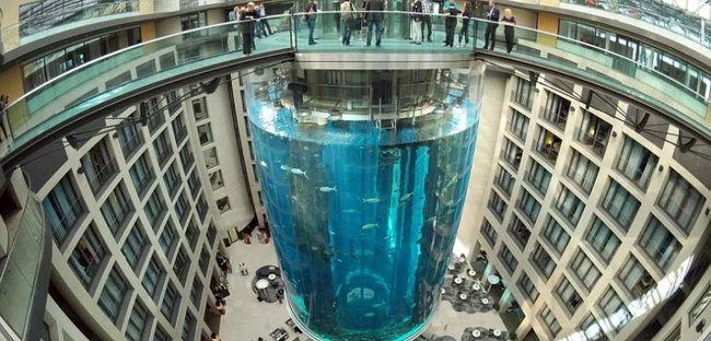 0În incinta hotelului Radisson Blu din Berlin se află Sea Life Berlin, care include şi cel mai mare acvariu cilindric din lume. Acvariul AquaDom conţine peste un milion de litri de apă şi are o înălţime de peste 24 de metri.