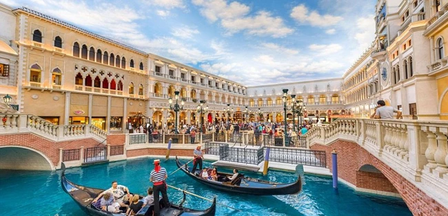 Cei care ar dori să se plimbe cu barca în timpul unei sesiuni de cumpărături pot opta pentru Hotelul Veneţian, galerie comercială unde vizitatorii se pot deplasa cu gondola de la un magazin la altul.