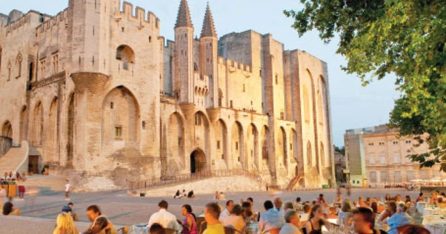 Palatul Papilor. Poate sună ca o platitudine, dar marea fascinaţie pe care o produce oraşul vine, în primul rând, de la ziduri şi, doar în al doilea rând, de la Palatul Papilor şi de la faptul că nouă pontifi s-au perindat în secolul al XIV-lea pe la Avignon