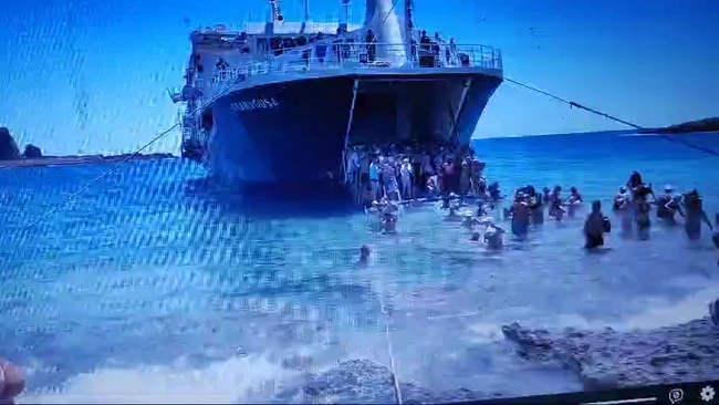 Incidentul a avut loc în timpul unei plimbări între insulele grecești. Românul a filmat scena în care turiștii erau obligați să coboare de pe vapor direct în apă.