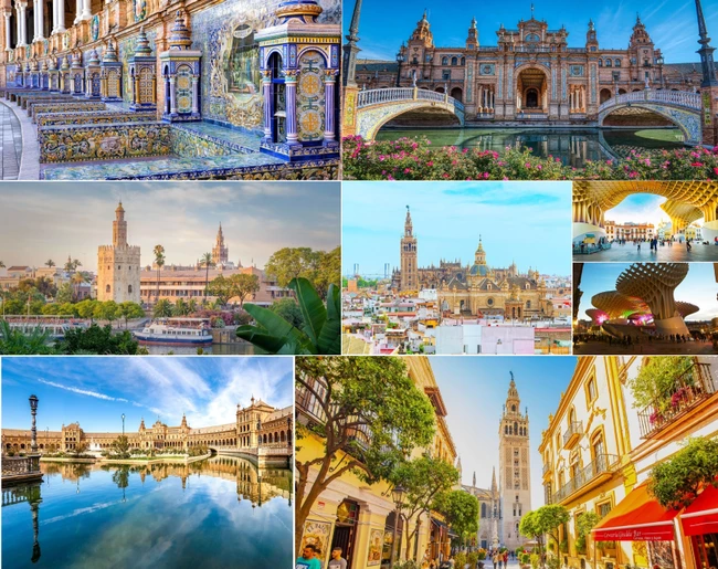 Splendida Plaza de España, un simbol al orașului, radiază energie: soarele, ceramica colorată și fântânile dansează împreună sub cerul albastru. Un loc unde fiecare rază de lumină pare să vibreze în ritmul unui pas de flamenco.